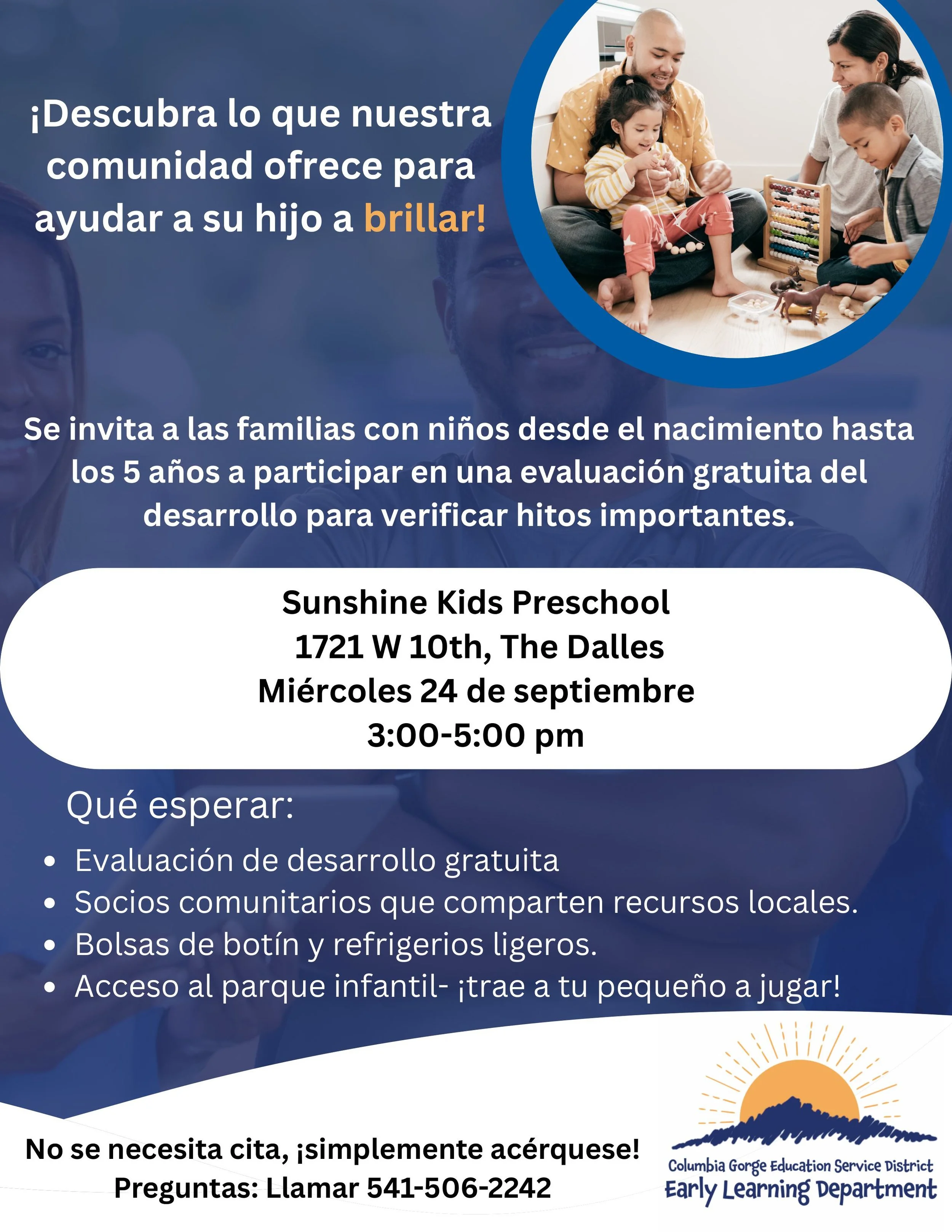 Families with children birth through age 5 are invited to come to a free developmental screening to check on important milestones.